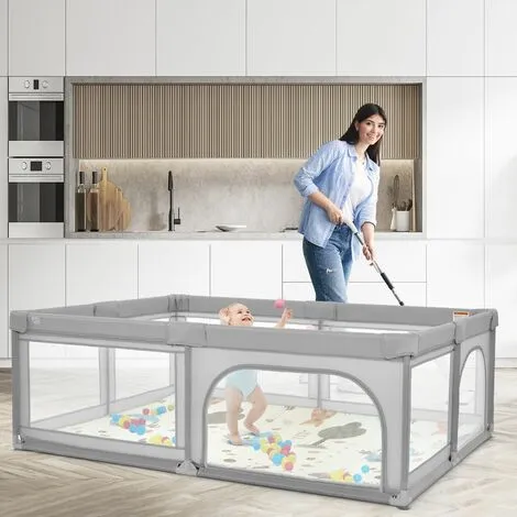 If you want to give your child a safe place to play, consider our playpen! This safety gate is a spacious play centre, which helps the child to stand upright and learn to walk. The playpen with external zip doors offers safety and protection, to prevent the child from running away. In addition, the mesh fabric makes it easy for parents to keep an eye on their child’s behaviour. In addition, the non-slip suction cups at the bottom make it difficult to tip and move. Suitable for children aged 0-3 years, it is also a perfect help for you and your child!