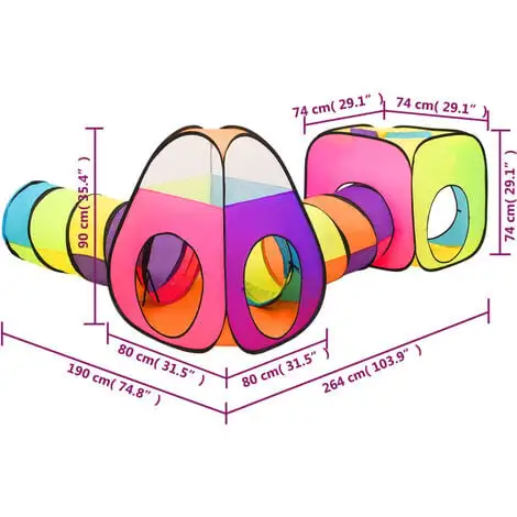 - Play tunnel dimensions (each): 46 x 110 cm (Diameter x L)