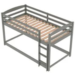 FYFAMILY Children Bunk Bed, Wooden Bed Frame, Sleeper Bedstead With Ladder And Safety Guardrail, For Kids Teenagers Bedroom 90 X 190 Cm Gray
