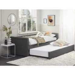 Beliani Modern Fabric EU Single Trundle Bed Frame 3ft Dark Grey Slatted Marmande