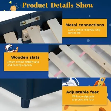 Are you looking for a comfortable and lovely bed for your little one? Our toddler bed with soft headboard and footboard is wonderful for you. The cute appearance will appeal to your children and attract them to spend their rest time in this bed. Besides, sturdy bed frame and adjustable feet offer enough support for your kids and can satisfy different needs. Made of premium material, this toddler bed can stand the test of time and you can use it for years without worry. Plus, the appropriate size and height is suitable for your child to get on and out of bed. Don’t miss it!