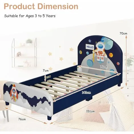 Are you looking for a comfortable and lovely bed for your little one? Our toddler bed with soft headboard and footboard is wonderful for you. The cute appearance will appeal to your children and attract them to spend their rest time in this bed. Besides, sturdy bed frame and adjustable feet offer enough support for your kids and can satisfy different needs. Made of premium material, this toddler bed can stand the test of time and you can use it for years without worry. Plus, the appropriate size and height is suitable for your child to get on and out of bed. Don’t miss it!