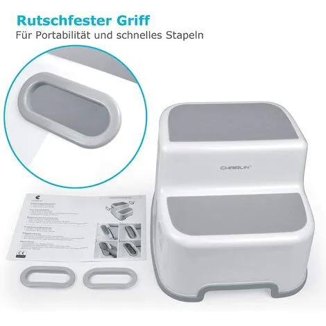 Non-slip The surface and bottom of the children’s step stool are non-slip rubber feet to ensure that the stool can stand firmly, has good friction force, can prevent the stool from slipping and sliding. The baby does not slip.