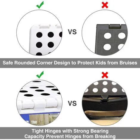 【Safe Stool and Non-slip】 The running board has been approved by the EN14183 certificate. Features has improved the folding bar. The four super safe rounded corners protect your body from impact.Rubber feet can be found on the 4 corners of the step to maintain a fixed position and protect against slips and falls. All of these designs keep your kids safe. first.