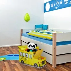 Brighten your child’s play area while keeping it organized and clutter-free with the Fantasy Fields Sunny Safari Kids Wooden Toy Organizer with Rolling Storage Box. This multicolor wooden shelving unit comes decorated with a fun safari display featuring bright trees and friendly jungle creatures for a whimsical playroom storage solution. The large, heavy-duty rolling storage compartment pulls out easily and contains ample space for your little one’s toys, craft supplies, clothes, and more, while the two shelves above keep books and other toys organized. For extra safety and to prevent pinched fingers, this shelving system has a gap between the storage box and the shelf above. Purchase this bench on its own or with other items from the Sunny Safari collection for a bright and joyful playroom. For quick and easy assembly, step-by-step instructions are included. With a solid design constructed of sturdy wood, this organizer is perfect for your child’s heavier toys. For convenient upkeep, the storage shelf’s easy-to-clean surfaces make wiping up any spills a breeze. The Fantasy Fields Sunny Safari Kids Wooden Toy Organizer with Rolling Storage Box measures 24.5 x 11.25 x 35.25 to fit in almost any bedroom or play area.