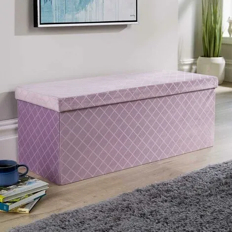 A blend of style and function, this ottoman provides any home with a wealth of storage due to its extra-large size. Easily foldable, you can move it around simply in order to save on space or create extra room. Keep any room tidy. Finished in a chic and fashionable lilac colour, the flat velvet shows off a statement diamond pattern.