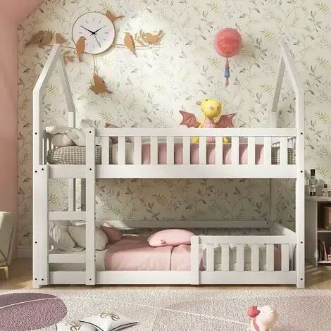 - ¡¾Excellent Quality¡¿: The wooden bunk bed is made of solid pine, which is very durable and can bear 120 kg. It meets the requirements of safety, strength and durability of double beds specified in European standards. You can rest assured that your child will be safe in bed.