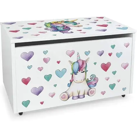 The chest has a hinged lid equipped with a protective mechanism against trapping fingers and a durable UV print of your favourite character. It can also serve as a bench to sit on.Made of 18 mm thick MDF.