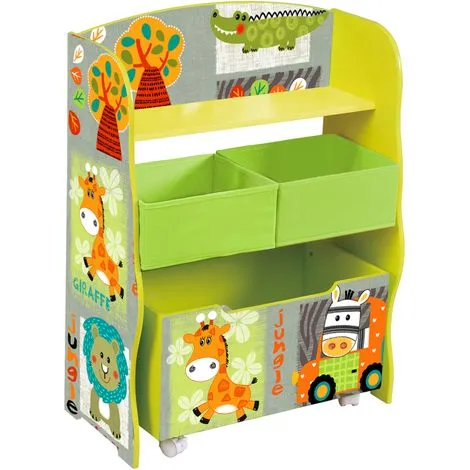 Kid Safari Storage Shelf With Toybox – Green Bins – Trendy Bright Colours And Patterns Are The Background For Our Kid Safari Animals.This Handy Storage Unit, Complete With Roll-out Toy Chest And 2 Removable Fabric Bins, Would Look Great In Any Child’s Bedroom Or Playroom.Supplied Flat Packed For Easy Adult Assembly.Any Accessories Shown Are Not Included Unless Stated.