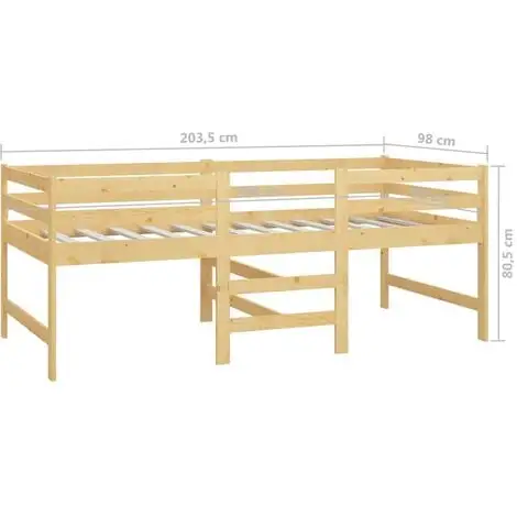 The bed frame is made of solid pinewood, making it sturdy and stable. Its mid-high design allows an easy access and ensures its safety. Additionlly, the space underneath can be used as a storage space or as a play area.