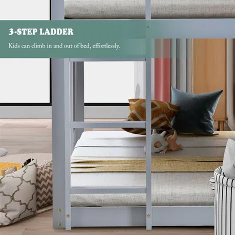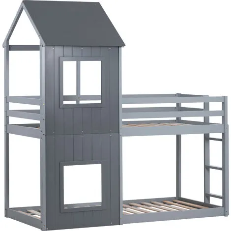 ModernLuxe Bunk Bed House Bed 3FT Treehouse Cabin Bed Frame With Treehouse Canopy & Ladder Grey