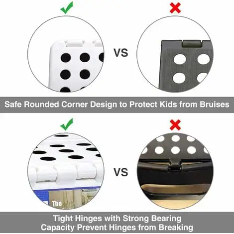 【Safe Stool and Non-slip】 The running board has been approved by the EN14183 certificate. Features has improved the folding bar. The four super safe rounded corners protect your body from impact.Rubber feet can be found on the 4 corners of the step to maintain a fixed position and protect against slips and falls. All of these designs keep your kids safe. first.