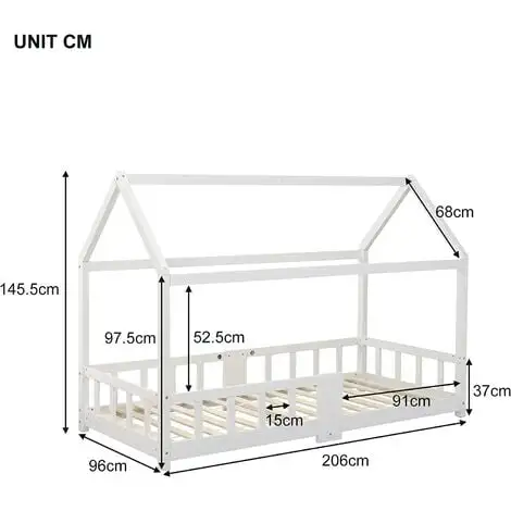 Easy installation: with illustrated assembly instructions, it is easy to build, your children can quickly enjoy the pleasure of the product. Total dimensions (L x W x H): 206 x 96 x 145.5 cm. Box contents: 1 house bed, 1 illustrated instruction manual, necessary assembly tools (without chalk and eraser). Without sticker inside the bed