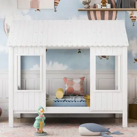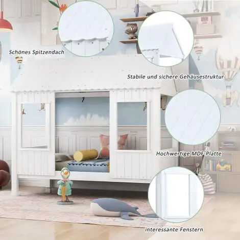 < strong>Starke Konstruktion. Das stabile Hausbett wird aus einem Kiefernholzrahmen und hochwertigen MDF-Platten mit Dicke hergestellt. Nach dem Test ist das eingebaute Bett besonders stabil und wackelt nicht. Die Qualität ist sehr zuverlässig und sicher.