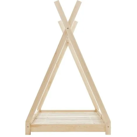 Create the ultimate hideaway in your children’s bedroom with our fantastic bed frame! The bed features novelty crossover framework inspired by the cool tipi style tents where you can hang bed curtains to create privacy for your kid. It can also be used as a reading nook or a play house for your child. Made of solid pine wood, this bed frame is exceedingly sturdy and durable. The strong slats offer the needed support and are highly comfortable. This bed frame is suitable for a mattress of 80 x 160 cm. Please note that delivery includes a bed frame only; a mattress and curtains are not included. The bed is easy to assemble. You can check our shop for the matching mattresses.