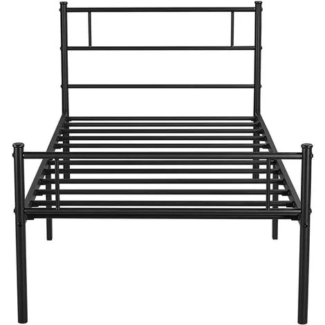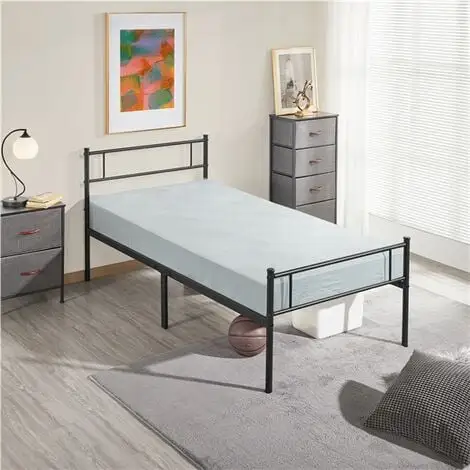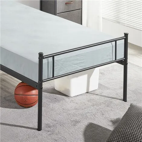 With simple lines and an open design, this 3ft single bed frame with a slatted headboard will be a good addition to your home. The metal tube base combined with a matte black finish creates a strong industrial vibe that is suitable for all traditional and contemporary decor homes. Crafted of metal slats, side rails and 6 solid legs, our single bed base is capable of holding up to 136 kg. The premium iron frame is powder coated for scratch and rust resistance. Cleaning will be a breeze, wipe clean with a soft, dry cloth. The 32cm of clearance under the bed well enlarges your bedroom storage space. It will be a good addition to bedrooms, guest rooms, spare rooms, dormitories, flats and more.